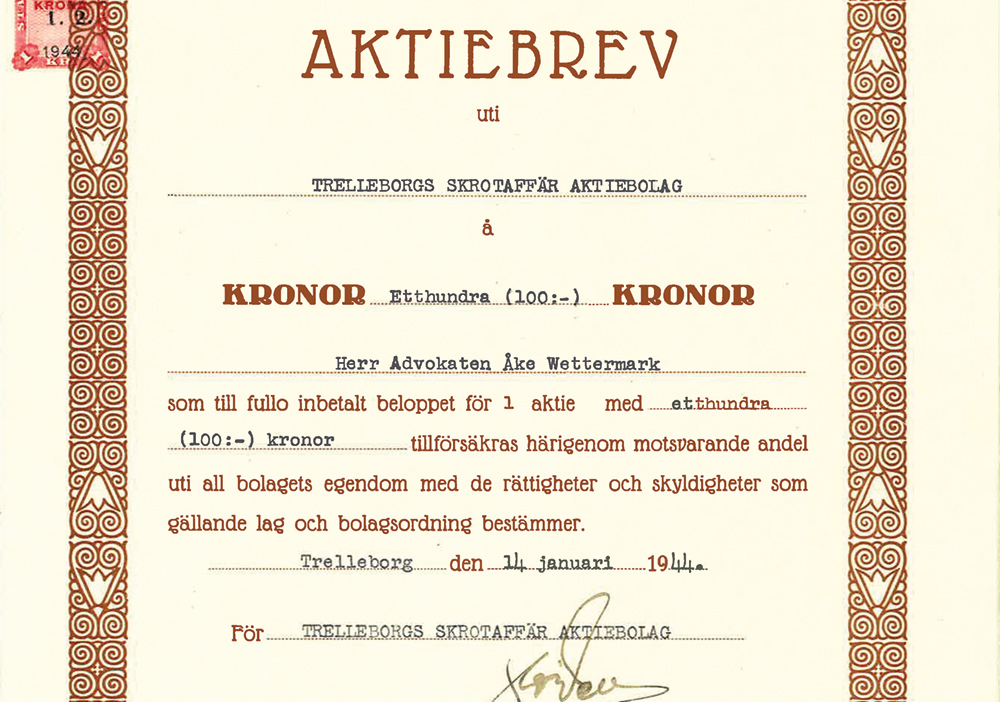 Det privatägda bolaget Trelleborgs Skrotaffär AB grundas i Trelleborg.