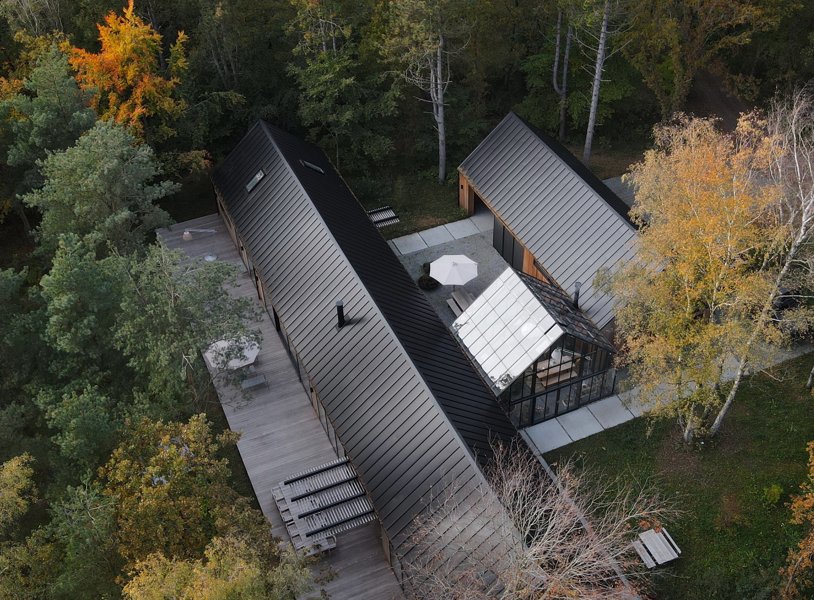 När arkitekt Bruno Jakobsen skulle börja rita sitt eget hus i Randers ringde han till Areco Profiles i Danmark, som han tidigare har goda erfarenheter av, för att kolla alternativen till ett svart plåttak med 40 graders lutning, och tillhörande rännor också i svart.
